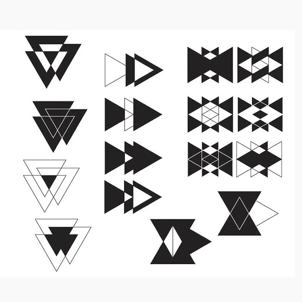 These compositions were recently created by students in the online class Principles of Visual Language: Form and Color. The image grid is arranged in reverse chronological order, beginning with final projects, and concluding with the first assignments of the semester—tangrams.